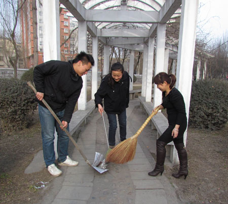 路義務(wù)打掃街道衛(wèi)生,清洗街道護欄,并對就近的公交站點進行了擦洗。